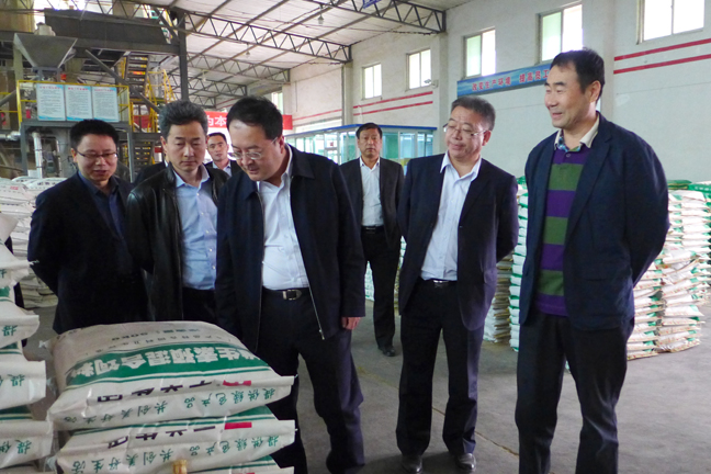中國農業銀行陜西分行副行長張方等領導參觀石羊集團專業豬飼料公司